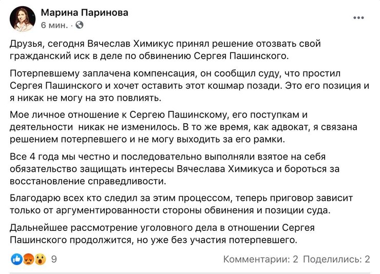 Выстрел в ногу. Почему потерпевший в деле Пашинского выбрал деньги, а не справедливость