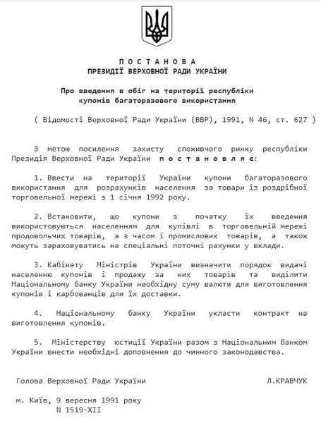 Это я к тому, что сегодня ровно 30 лет, как в Украине в ряд светлых голов пришло решение ввести купоны многоразового использования с 1 января 1992 года (реально их введут с 10 января).