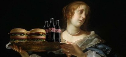 Современный бразильский художник Габриэль Нарделли Араухо интегрировал гамбургеры и картофель фри в картины эпохи Возрождения.