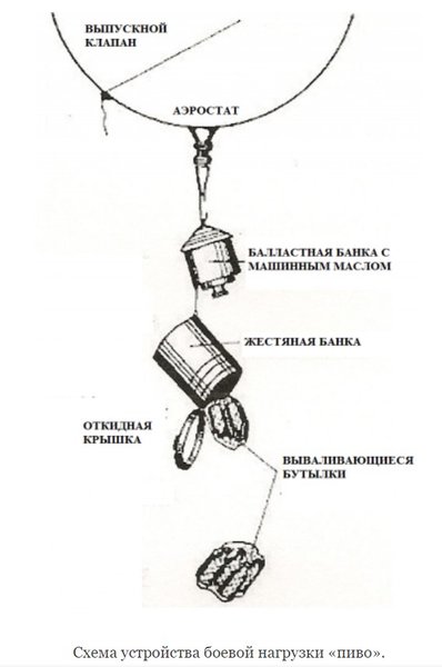 "Во время Второй мировой войны британцы запускали в сторону Германии воздушные шары с полезной нагрузкой "проволока", "пиво", "желе", "носки", "лимон" и "джем". Например, "проволока" — это обычная проволока толщиной 1,6 мм, которая свисала с низколетящего шара и замыкала линии электропередач". Мнение.