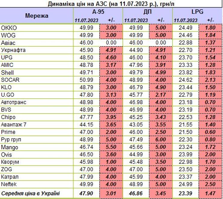 - Дизтопливо — плюс 3,45 грн/л (8 грн/л);