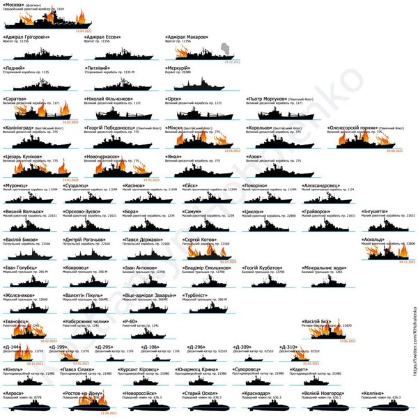 Мощный и дорогой флот Российской Федерации стоимостью в десятки миллиардов долларов оказался слабым и беспомощным, истребляется дронами стоимостью $270К и может только наблюдать за тем, как "величие русского оружия" кормит рыбу на дне.