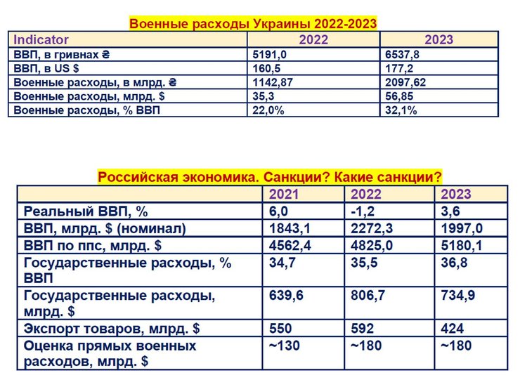 Получается, что с начала активной фазы российской войны в Украине затраты на ведение войны агрессора за 2022-2023 гг. на 43% (~на $108 млрд) были больше совокупных затрат Украины и ее западных партнеров. С учетом запланированных затрат в 2024 г. затраты врага на финансирование войны превысят совокупные затраты Украины и ее партнеров на ~50%.