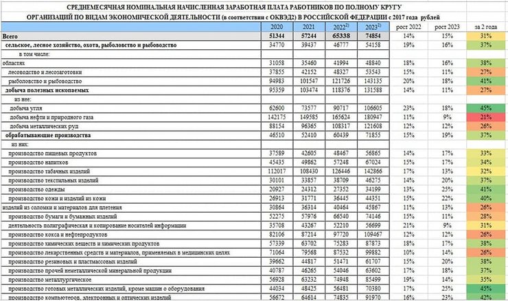 Всего за 2 года войны зарплата в некоторых сферах выросла на 45–50%.
