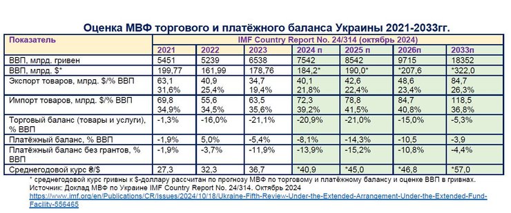 Все эти императивы относятся к Правительству, которое ориентируется на обеспечение быстрого, долгосрочного экономического роста, вхождение в престижный клуб стран с ВВП более одного триллиона долларов. Такого Правительства сегодня в Украине нет. Как и нет такого видения развития у МВФ, которое в октябре в очередной раз представило свой прогноз развития страны до 2033 года. Оценка Фондом динамики внешней торговли Украины убеждает нас в том, что шансов на модернизационный прорыв нет. По меньшей мере, в прогнозах МВФ на ближайшие восемь лет она не просматривается. Обратимся к цифрам.