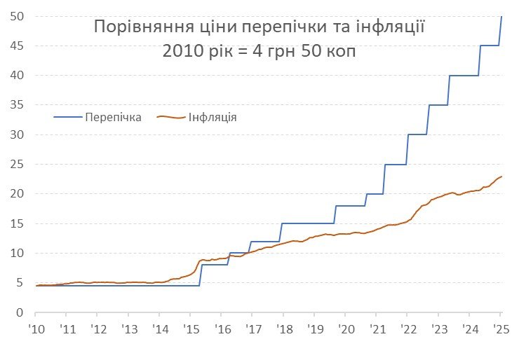 Знаменитая киевская перепичка — чем не вариант такой неизменности. К тому же СМИ регулярно пишут об изменении цены этого культового продукта. Так в 2010 перепичка стоила 4 грн 50 копеек, сегодня — 50 грн. То есть имеем рост цены на +1011%, или более десяти раз. Индекс инфляции за этот период вырос на +409%, то есть более пяти раз.