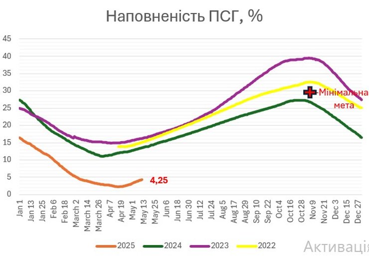 Читал, что "Нафтогаз" и "Укртрансгаз" законтрактовали с начала года уже 1.8 млрд м3, но следует понимать, что 0.9 млрд м3 было завезено в Украину в феврале-апреле, поэтому почти все было уже потреблено и некорректно было бы эти объемы учитывать как закачку для зимы 25/26. То есть для следующей зимы законтрактовано чуть менее 1 млрд м3 из 5 минимально необходимых, или 20%.