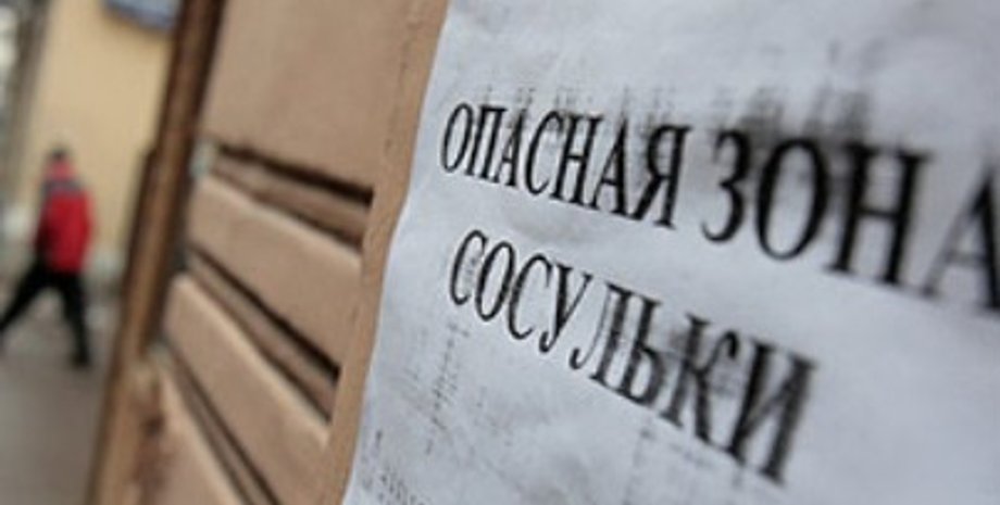 В Киеве на улице Московской неподалеку от здания Высшего админсуда на женщину упала огромная сосулька с крыши дома