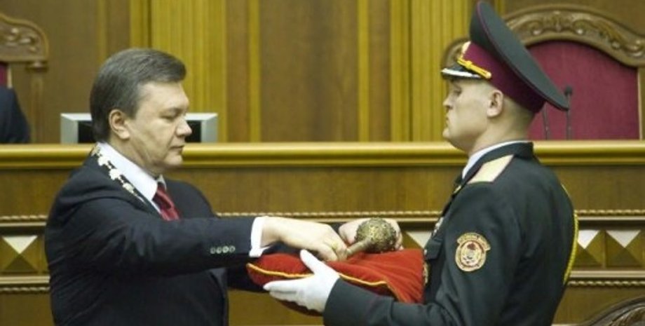 "Ответственность и смирение", – такие слова приготовили спичрайтеры, очевидно, характеризуя публике внутреннее состояние новоиспеченного гаранта. Януковичу, как полагается, повесили на шею колар, преподнесли печать, булаву и выдали удостоверение президента Украины, которое он с довольной улыбкой деловито спрятал в карман на пиджака.