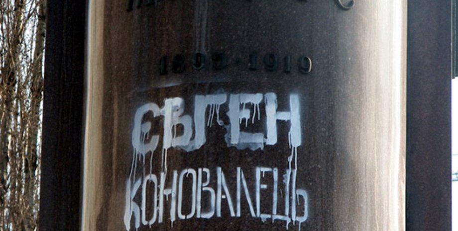 Этой ночью неизвестные написали на памятнике Николаю Щорсу, что на бульваре Шевченко в Киеве, "Євген Коновалець", превратив таким образом памятник герою гражданской войны в памятник герою УНР
