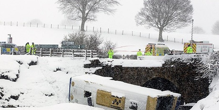 Сегодня, 31 марта, из-за сильных снегопадов в Шотландии, возле города Винстон, в реку с моста упал школьный автобус