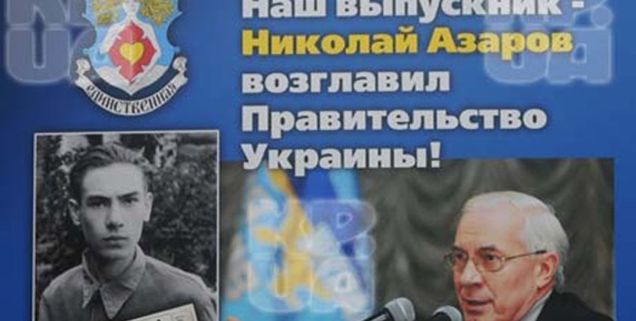 В родной школе Азарова в честь него установили стенд