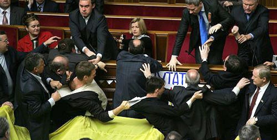 Оппозиционные депутаты, пытаясь воспрепятствовать такому решению, забросали спикера Владимира Литвина яйцами. Также оппозиционеры пустили в ход дымовые шашки и сирены. Кроме того, в зале произошло несколько драк между группами депутатов.