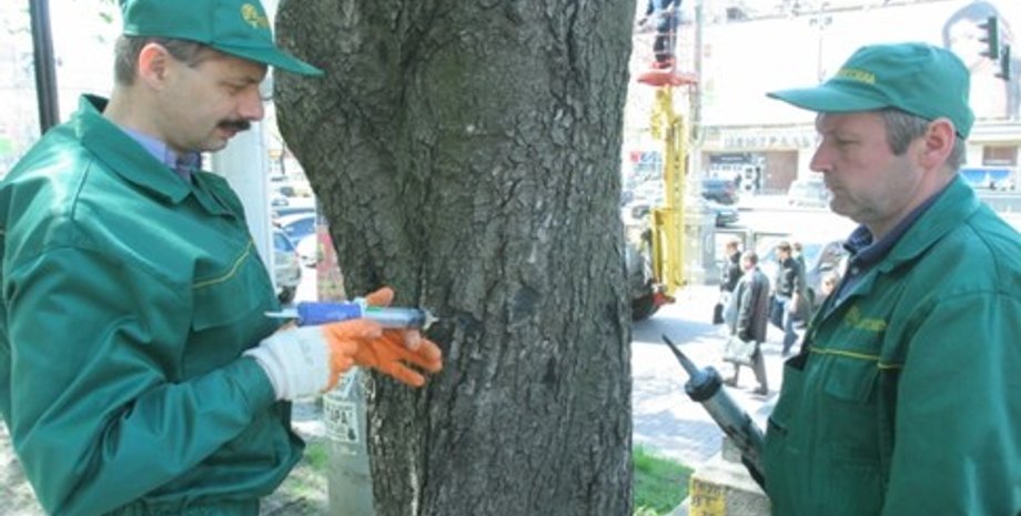 Сначала по всему диаметру столба сверлят 7-сантиметровые отверстия, в них с помощью шприца впрыскивают "лекарство", затем отверстия заклеивают жидким силиконом, пишет газета Сегодня. Стоимость одной манипуляции — 184 гривни. "Благодаря уколу каштан не будет болеть еще 3 года", — говорит Липский.