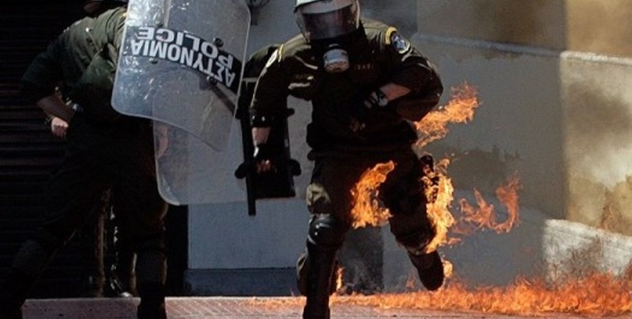В центре Афин несколько десятков молодых людей бросали бутылки с зажигательной смесью в здания магазинов и банков. В результате одно из зданий банков загорелось, сообщает Lenta.ru