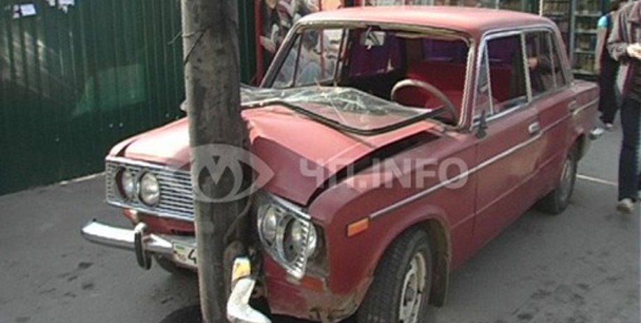В Киеве ВАЗ сбил двух людей и врезался в столб