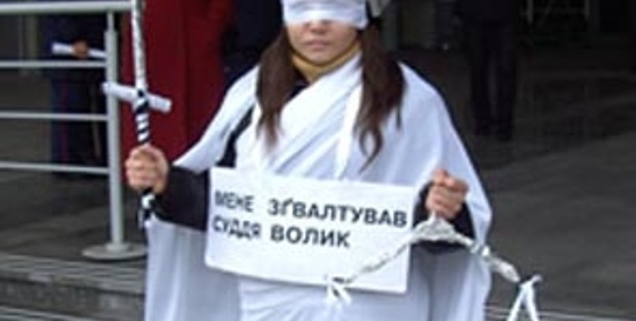 В ходе акции активисты "Братства" поставили под зданием суда "Фемиду" с табличкой "Меня изнасиловал судья Волик". Кроме того, митингующие приковали себя наручниками к двери главного входа в помещение суда. Силами милицейского спецподразделения наручники были перекушены с помощью специальных клещей, а активисты задержаны.