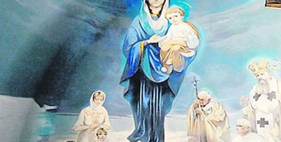 На сводах греко-католической церкви архистратига Михаила в селе Верин подо Львовом изобразили экс-президента Виктора Ющенко с женой Катериной и сыном Тарасом по правую руку от Богородицы