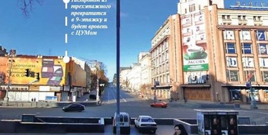 Как рассказали в компании-застройщике, новый Центральный гастроном будет высотой с ЦУМ. "Здание на Крещатике, 40/1, станет после реконструкции 9-этажным. Там будет подземный паркинг, торговые площади (с 1 по 5 этаж), офисы (6—7 этажи), а на последнем разместим ресторан с террасой, откуда для посетителей откроется шикарный вид на центр", — рассказал директор компании Владимир Прокопенко.