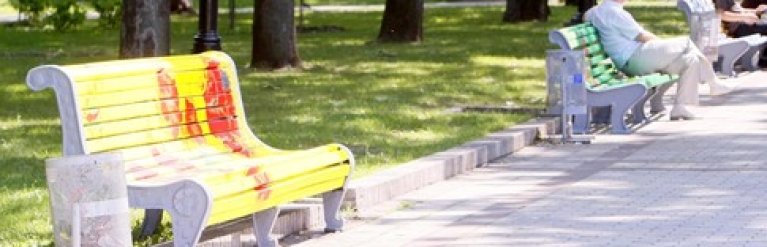 На днях завершился аукцион по продаже авторских лавочек, которые молодые художники разукрасили на углу улиц Прорезной и Пушкинской