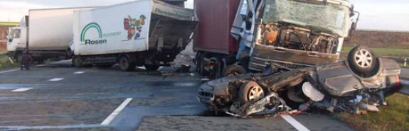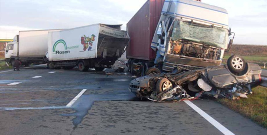 В Кировоградской области произошло ДТП с участием трех грузовых автомобилей и одного легкового. В аварии погибли двое взрослых и один пятимесячный ребенок