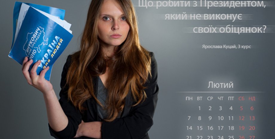 Напомним, сегодня украинским СМИ был представлен календарь с острыми вопросами для президента. Подобно российским журналисткам, подготовившим календарь для Владимира Путина, украинские студентки задают 12 вопросов Виктору Януковичу.