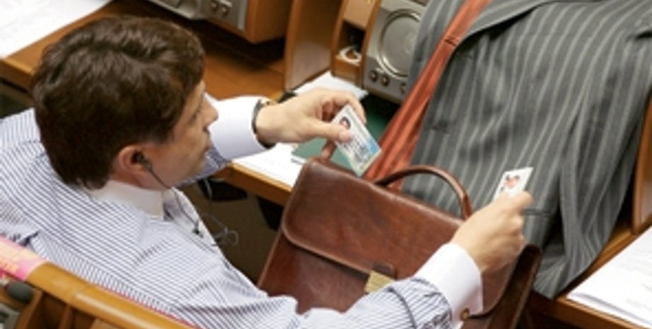 "Голосование на заседаниях Верховной Рады осуществляется народным депутатом Украины лично", – гласит статья 84 Конституции. Но это не мешает некоторым депутатам не появляться в парламенте неделями – свои карточки для голосования они оставляют однопартийцам. А за лидера фракции Партии регионов в Верховной Раде 5-го созыва Раису Богатыреву и вовсе голосовал ее "дух", пока сама она лечила воспаление десен и не могла присутствовать на заседании – именно так поясняла факт голосования карточкой Богатыревой ее коллега Анна Герман. Не редкость в ВР и ситуация, когда 60 присутствующих в зале депутатов принимают решения 400 голосами. Именно поэтому в Верховной Раде ценятся быстро бегающие и оперативно нажимающие на кнопки соседей по фракции нардепы.