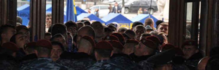 Как сообщает пресс-служба ВО "Свобода", "Беркут" не дал партийцам попасть в помещение комиссии. "Свободовцы" говорят, что хотели продемонстрировать членам комиссии доказательства грубых фальсификаций во время выборов в Ивано-Франковский облсовет.