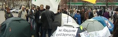 Бессрочная акция протеста против признания результатов выборов Харьковского городского головы началась 9 октября. На площади Свободы появились первые 6 палаток в поддержку кандидата в мэры от "Батьківщини" Арсена Авакова.