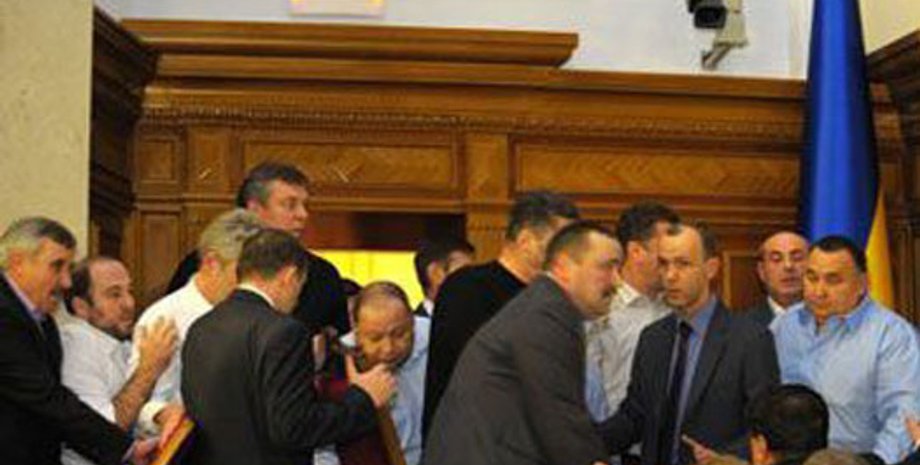 Около 19:00 в ВР неожиданно погас свет и началась массовая драка с участием народных избранников от БЮТ и Партии регионов.