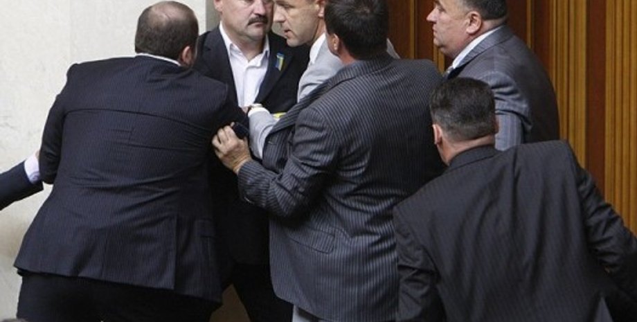 Около 19:00 в четверг в ВР неожиданно погас свет и народные избранники начали потасовку.