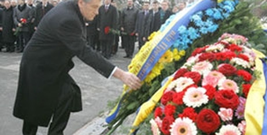 Президент Виктор Ющенко почтил сегодня память Героев Крут и возложил цветы к мемориалу возле железнодорожной станции Круты (Черниговская область).