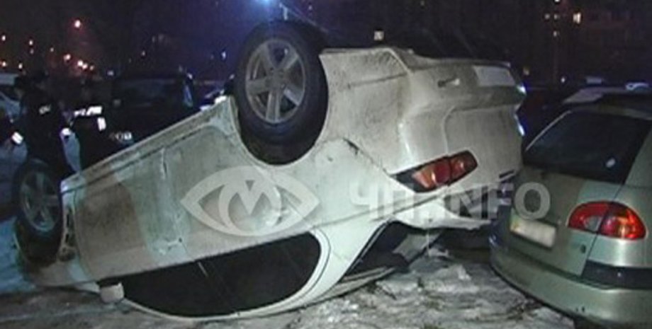В Киеве иномарка упала с четырехметровой высоты на автостоянку