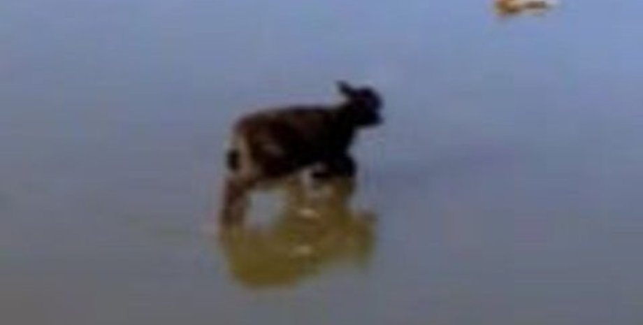 В американском штате тележурналисты спасли теленка, сдув его с замерзшей глади льда на берег