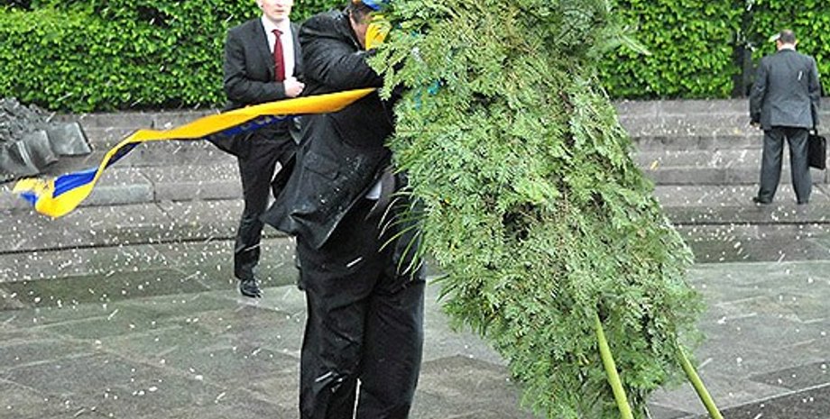 3. Венок Януковича. (17 мая 2010 г.) По версии Google, история с венком Януковича попала в топ событий 2010 года, которые пользователи чаще всего искали в Интернет. 17 мая во время визита в Украину российского президента Дмитрия Медведева, в ходе возложения венков к могиле Неизвестного солдата украинского президента чуть не сбило венком: ветер подхватил композицию и понес на Януковича. Между тем, ролик с венком мог и не попасть в Интернет. Российский телеканал, который снял это видео, не хотел его обнародовать, сославшись на просьбу администрации украинского президента. Продюсер канала путался в причинах, по которым видео не может быть доступно. Сначала он сообщил, что не даст это видео, поскольку оно выставляет президента Януковича в плохом ракурсе. Потом уточнил, что не даст это видео, так как оно "содержит технический брак". Кстати, история с венком на этом не закончилась. Венок, налетевший на Януковича, продали с интернет-аукциона за 42 тыс. грн.