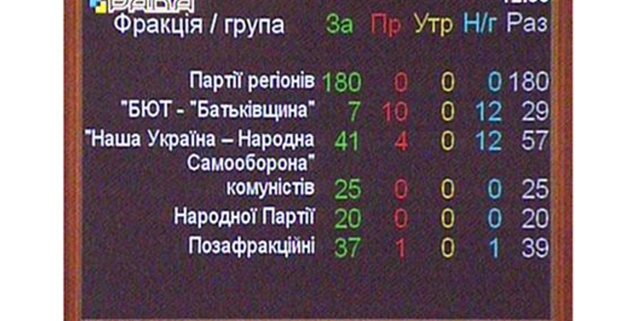 От Партии регионов "за" проголосовали 180 человек. Однако, как сообщает "Украинская правда", в сессионном зале не было Рината Ахметова и всех депутатов из его ближайшего окружения - Кия, Мальцева, Черткова, Аркаллаева. Не видели в Раде и Юрия Иванющенко, известного как Юра Енакиевский, а также депутатов-совместителей - Васильева, Саламатина, Джиги, Ильяшова, Калетника. Если принять во внимание законодательный запрет на передачу права голоса депутата другому лицу, то без названных депутатов за изменения в Конституции могли проголосовать не более 299 человек.