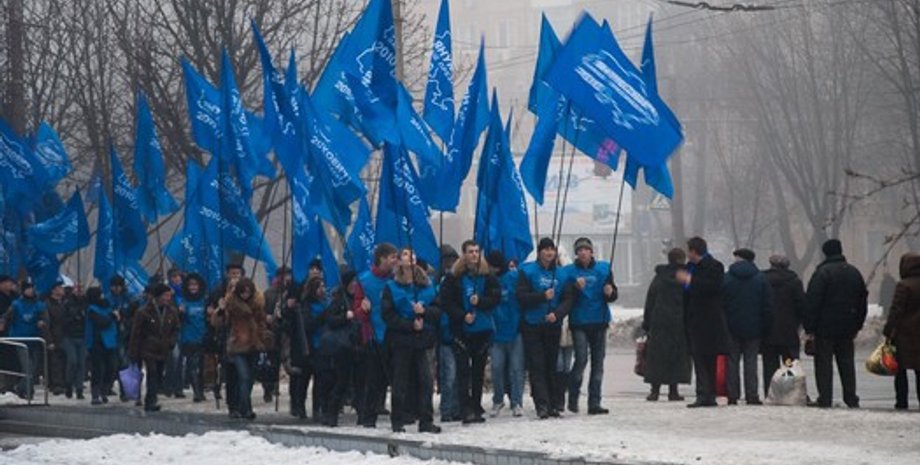 На уточняющий вопрос, они ответили, что в этот день, 25 февраля, - годовщина инаугурации Виктора Януковича, и они пришли поддержать президента. При этом активисты не имеют никакой символики, за исключением одного флага Партии регионов.