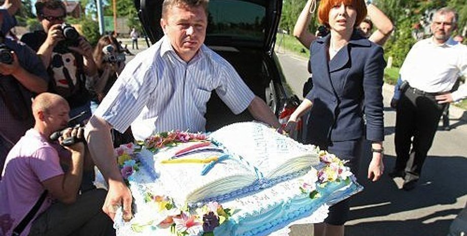 Торт, который президент Виктор Янукович передал журналистам, достался строителям, работающим рядом с "Межигорьем".