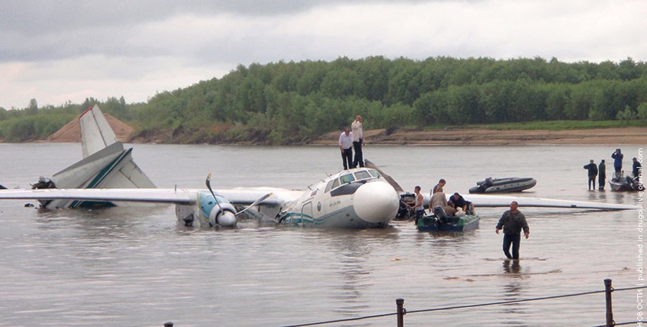 Ан-24 авиакомпании "Ангара" приводнился в 63 километрах от Нижневартовска в реку Обь утром 11 июля. Пилоты приняли решение садиться на воду, когда у самолета загорелся левый двигатель.