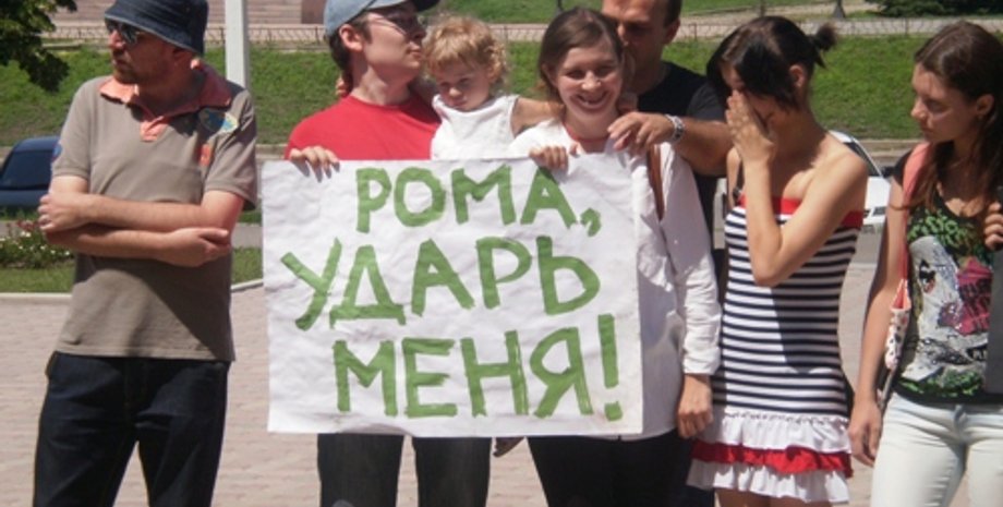 В Луганске прошла акция "Рома, ударь меня", посвященная депутату Ландику