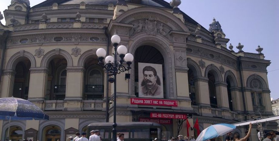 Сегодня, 17 июля, на здании киевской Национальной оперы Украины был размещен портрет Иосифа Сталина
