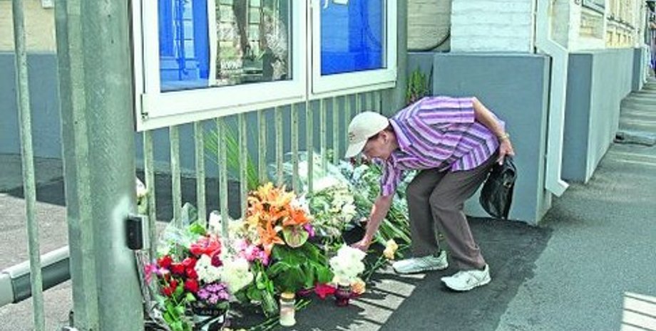 Граждане Украины, потрясенные двойным терактом в Норвегии, несут цветы к посольству скандинавской страны в Киеве. Возле ворот всю ночь на понедельник горели лампадки.