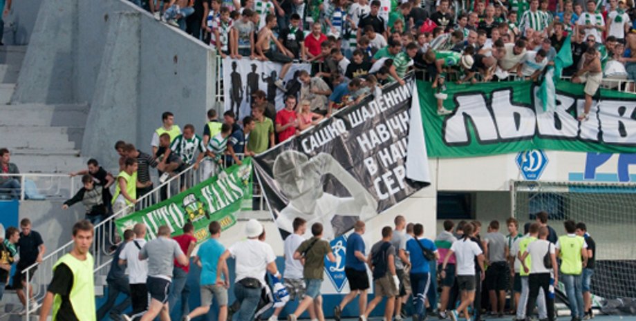 Как пишет газета Сегодня, на мужчину, пытавшегося сорвать плакаты, напали пятеро фанатов "Карпат" и стали избивать. Позже к львовянам присоединились два десятка динамовских фанатов.
