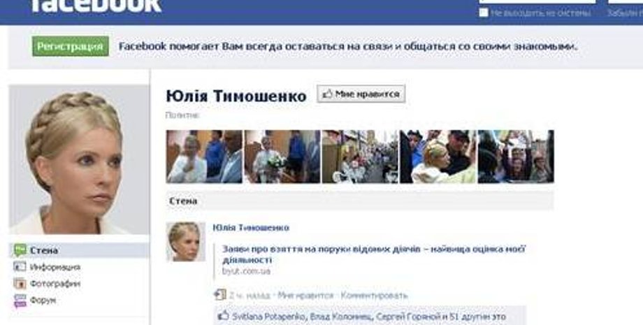 В социальной сети Facebook открыто официальное представительство экс-премьер-министра Украины Юлии Тимошенко, которая в настоящее время находится под стражей