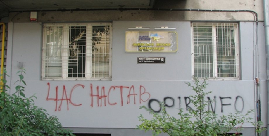 Во Львове разрисовали офис Партии регионов