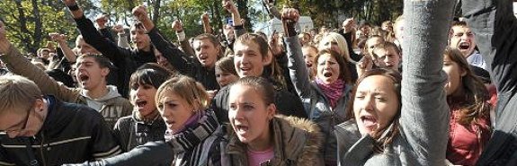 В управлении связей с общественностью подчеркнули, что студентов среди собравшихся – не более 20%, а остальные – так называемые "политические заробитчане".
