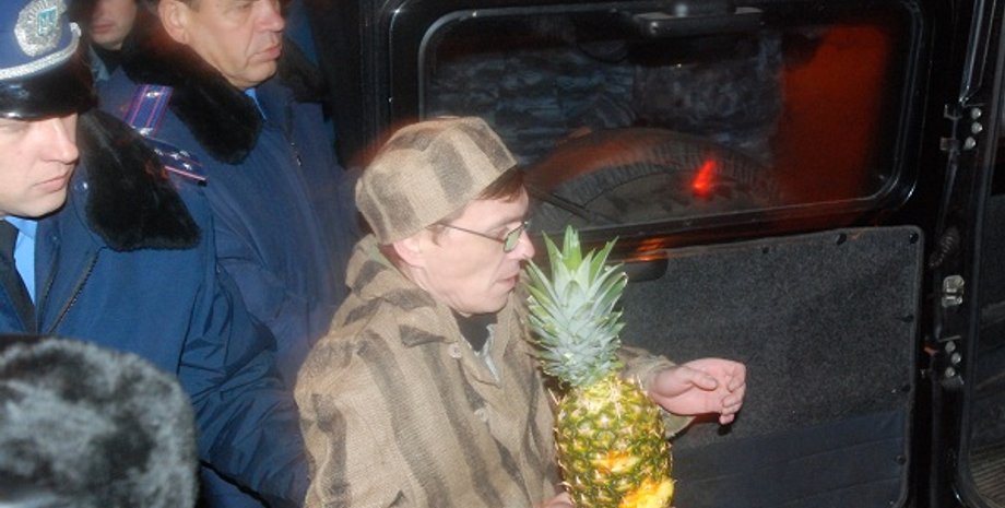 "В итоге, когда ребята переоделись в зэковские робы и двинулись к АП с ананасами в руках, как всегда, отреагировала наша доблестная милиция и задержала людей по ст.185 прим. ("нарушение проведения собраний, митингов и демонстраций". – ред.)", - пояснил активист КУОР и добавил, что задержанным грозит до 15 суток ареста, либо исправительные работы, либо административный штраф.