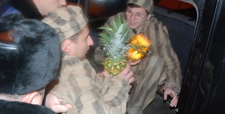 Напомним, в ночь с 31 октября на 1 ноября активисты ВОО "Коалиция участников Оранжевой революции" предприняли попытку поздравить Януковича с Хэллоуином. Они изготовили традиционные головы из ананасов, и вставив внутрь свечи, пошли к администрации президента. Активисты несли транспаранты с надписями "Спасибо жителям Донбасса ...", "Ешь ананасы, рябчиков жуй - день твой последний приходит, буржуй!", "Welcome to Hell". Но усиленные наряды милиции помешали этим намерениям и задержали троих участников празднования.