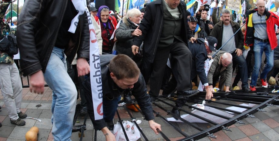 Митингующие под Радой опять проломали забор