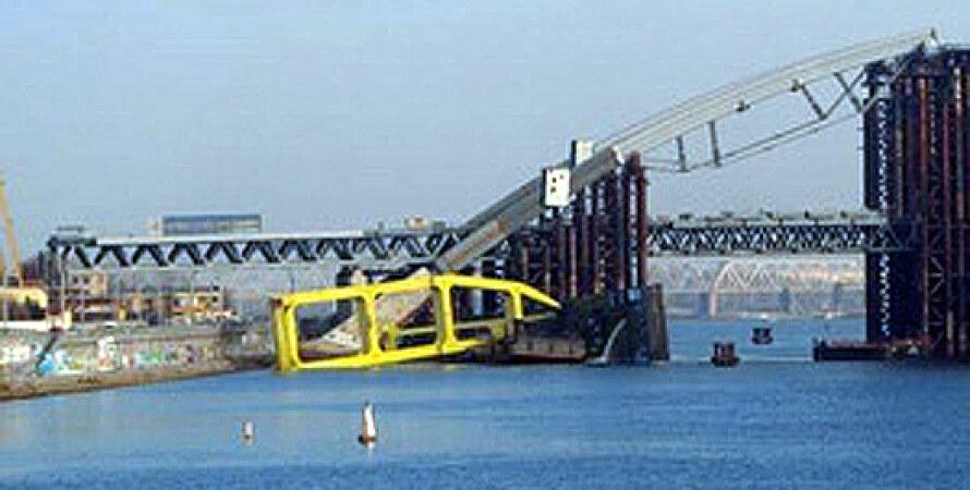 Сегодня, 18 ноября, в Киеве около 11:10 возле Набережно-Рыбальской улицы упал плавучий кран Захарий LK-600, работавший при монтаже арок Подольского мостового перехода